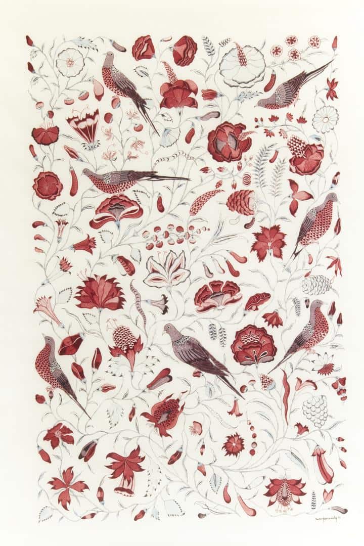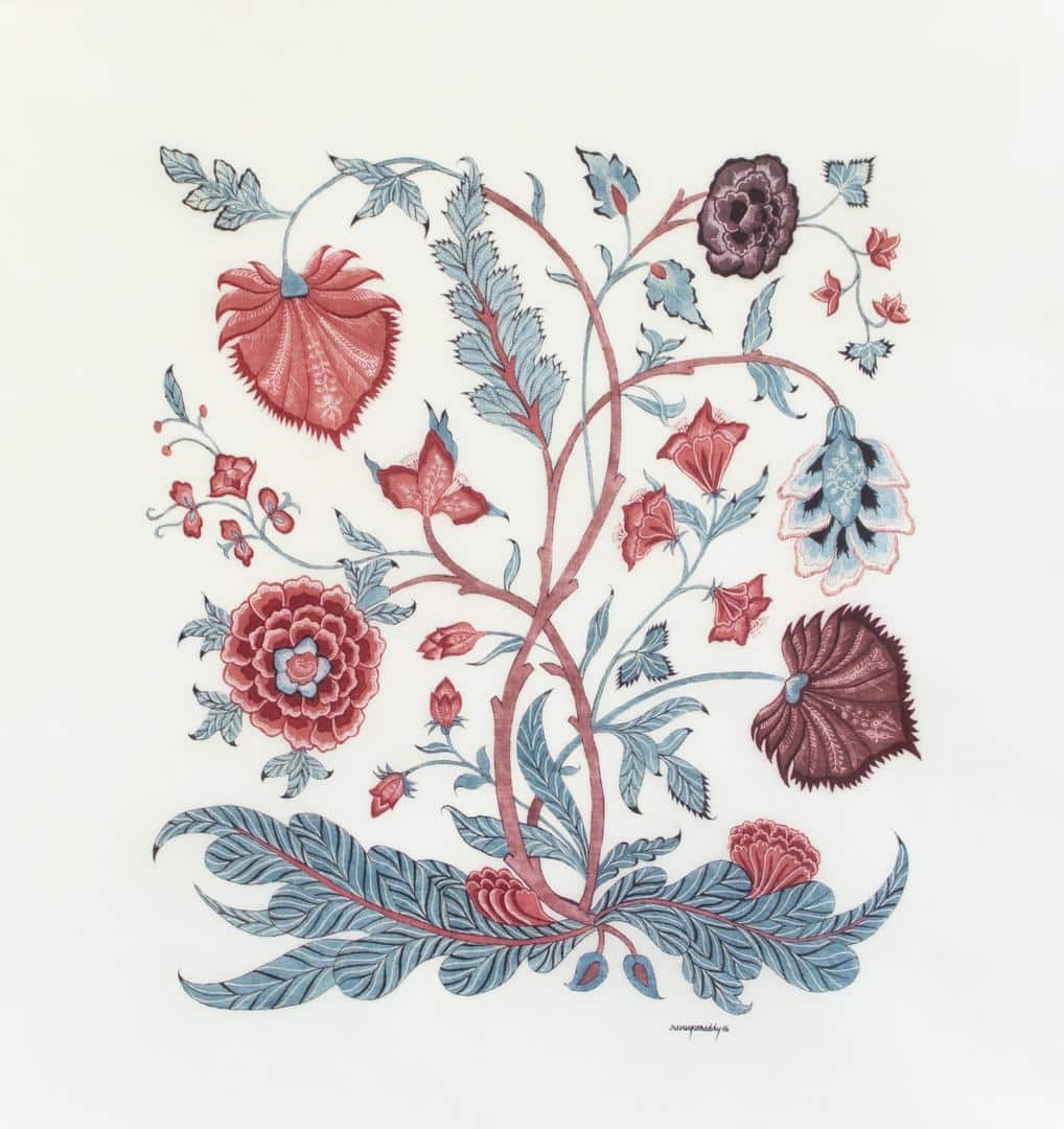 Renuka first came to visit me at the V&A in 2012. She had written to say she was exploring traditional chintz techniques and asked if she could show me some of her work, which she had based partly on the illustrations in my book 'Chintz: Indian textiles for the West.' I was of course intrigued (and delighted that my book was proving useful) and agreed to meet her. Renuka appeared in my office bearing a portfolio and a large roll of fabrics which she proceeded to unfurl on a table. I was amazed at what she showed me.
